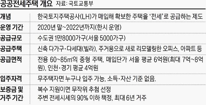LH는 이달 중 공공전세주택을 지어 납품할 민간 사업자들을 대상으로 사업설명회를 진행한 뒤 최대한 빨리 주택 확보에 나설 계획이다.