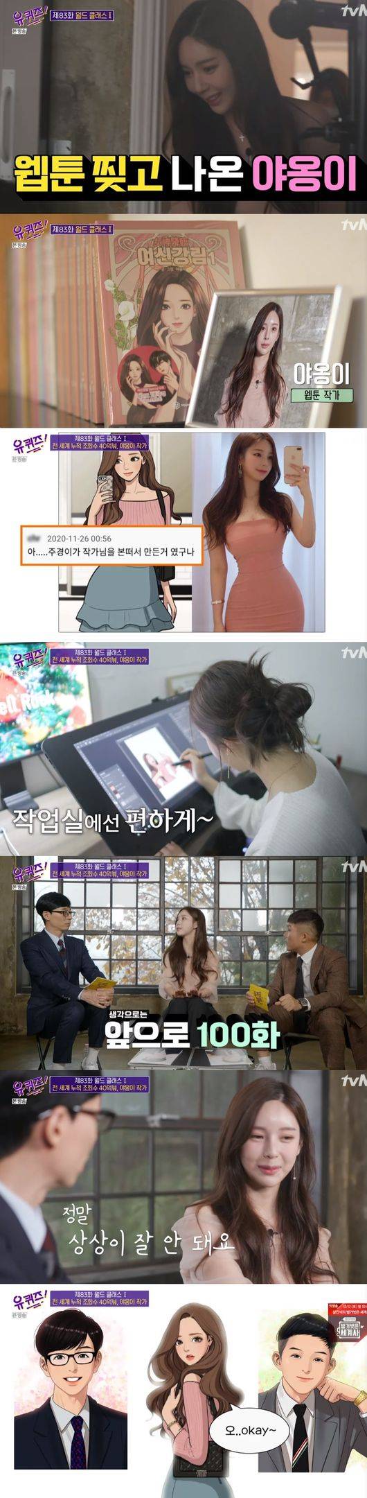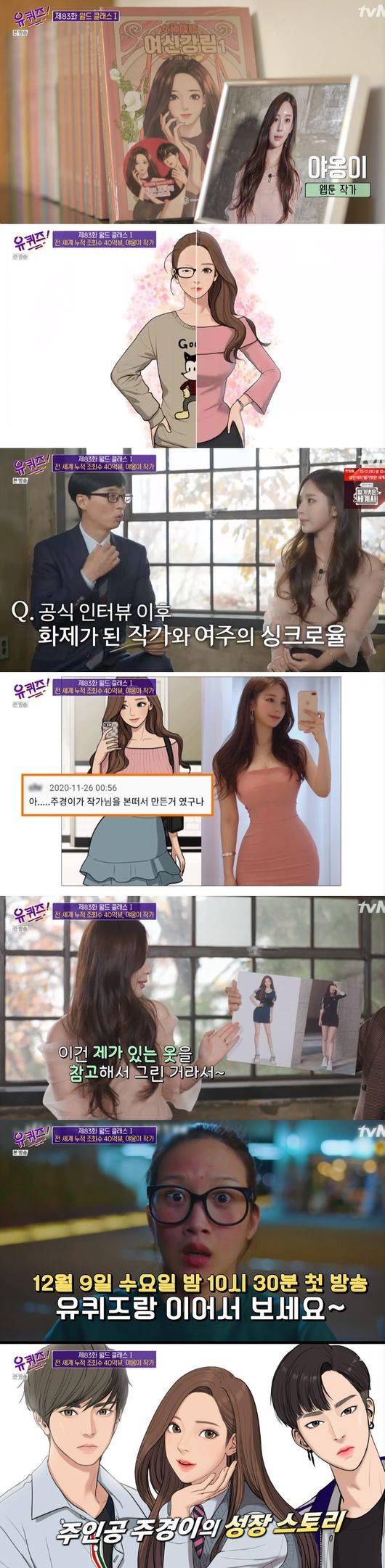 본격적으로 월드클래스 특집이 이뤄진 가운데, 무엇보다 웹툰찢고 나온 '여심강림'의 야옹이 작가가 출연해 눈길을 끌었다.전세계 웹튼 40억 뷰를 달성한 그녀는, 웹툰 여주인공과 싱크로율 100프로로 화제가 된 바 있다.