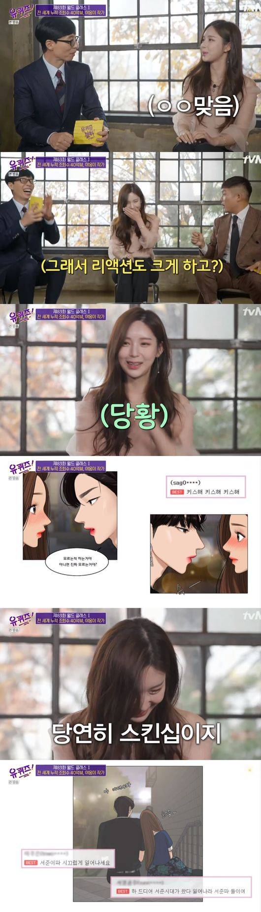 [OSEN=김수형 기자] '유퀴즈'에서 '여신강림' 야옹이 작가가 연인 전선욱 작가에 대해 언급하며 러브스토리를 밝혀 눈길을 끌었다.