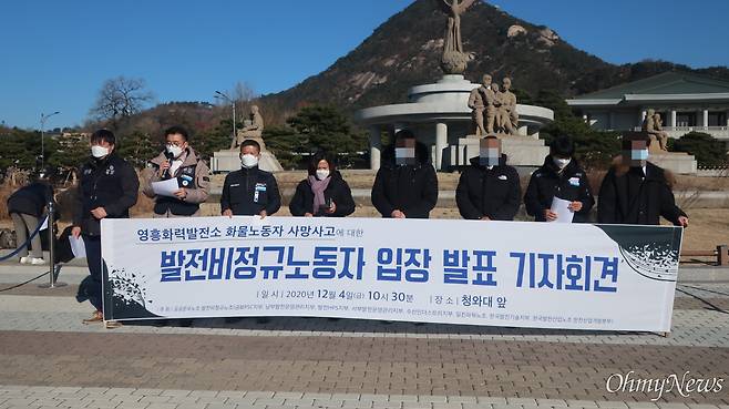 지난 11월 28일 인천광역시 옹진군에 위치한 한국남동발전 영흥발전본부에서 석탄회 상차작업을 하다 추락해 사망한 심장선씨의 아들이 4일 청와대 분수대 앞 기자회견에서 "편하게 못 떠난 아버지의 장례를 빨리 치르고 싶다"면서 한 말이다.