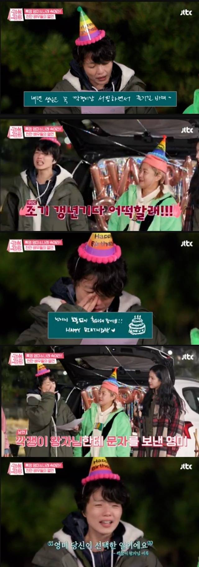 안영미는 또 "깍쟁이 왕자님과 함께하지 못하는 빈자리, 우리 갬멤이들이 꽉 채워서"라는 손나은의 편지를 마저 읽지 못하고 눈물 흘렸다.