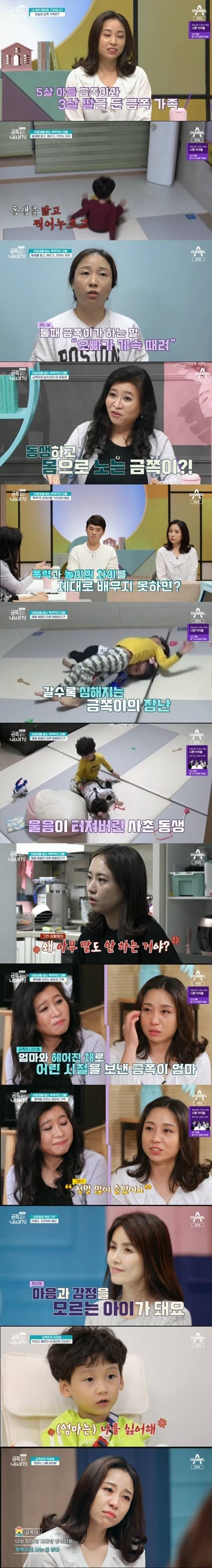 이날 5살 금쪽이, 3살 딸을 키우고 있는 부모가 등장했다. 영상에서는 집에서 동생과 과격하게 장난치는 금쪽이의 일상이 공개됐다. 금쪽이는 엄마가 RC카 놀이가 시끄럽다며 그만두라고 하자 “배고파”라고 말했고 엄마가 신경쓰지 않자 이후 동생을 밀치면서 밟고, 머리를 찍어누르는 등 폭력적인 모습을 보였다. 금쪽이 엄마는 “둘째 금쪽이가 저에게 와서 오빠가 자기를 때린다고 말하더라. 애들은 저렇게 크는거라 생각을 하다가도 나중에는 부모도 금쪽이를 못 이길 것 같다”며 고민을 털어놨다.