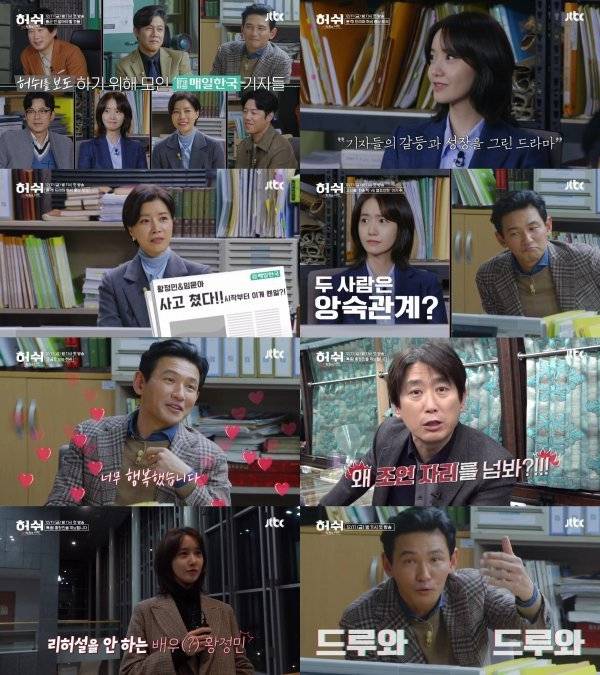 편집국장 박경림이 단독 입수한 ‘특종! 황정민을 제보합니다’ 영상도 화제를 모았다. 그와 절친한 김원해는 황정민의 드라마 출연에 위기(?)를 느꼈다며 “그는 왜 드라마로 왔을까요? 우리는 그것이 알고 싶은 것입니다”라는 사뭇 진지한 하소연으로 웃음을 유발했다. 함께 출연하는 배우들과 스태프들의 폭로(?)도 이어졌다. 임윤아는 “리허설을 안 하는 배우”라고 의미심장하게 운을 뗀 후, “리허설이라고 하시는데, 제가 볼 때는 실전과 다름없다. ‘내가 본 텍스트를 어떻게 저렇게 표현하시지?’라고 생각하면서 많이 배우고 있다”고 밝혔다. 칭찬 세례에 황정민은 “처음 세트장에 들어왔을 때 모든 배우가 자기 자리에 앉아있는 것 같았다. 그 모습을 바라보는데 고마웠다. 그런 에너지를 받다 보면 저도 모르게 한준혁이 되어있다”고 전해 남다른 팀워크의 비결을 짐작하게 했다.