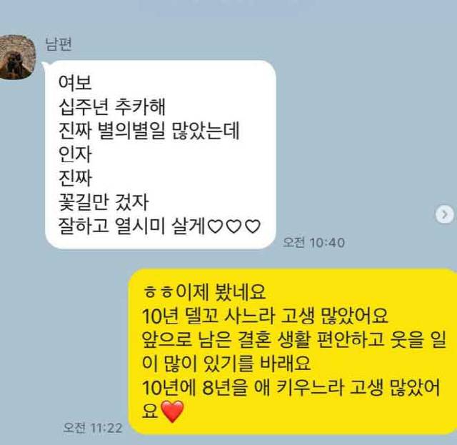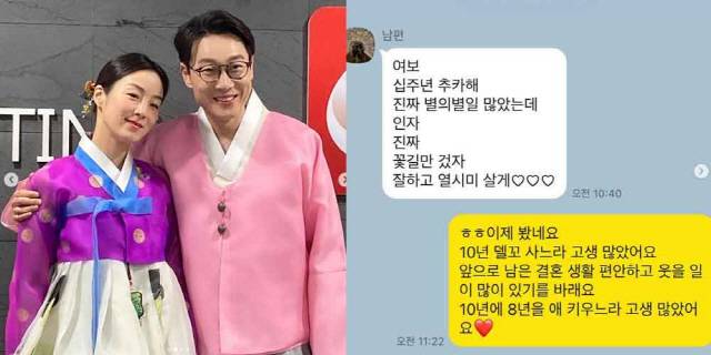 공개된 메세지에는 결혼 10주년을 맞은 부부의 축하 인사가 담겨 있다.