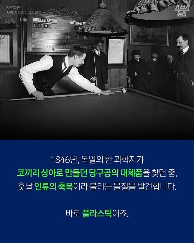 플라스틱은 약 150년 전, 상아로 만드는 당구공의 대체품을 찾다가 탄생했는데요.