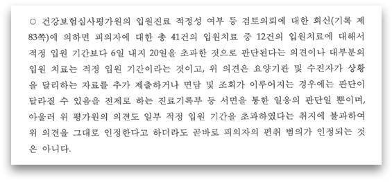 보험사는 동일한 질병에 대한 최대 보험료 지급일수인 120일에 맞춰 입원 일정을 조정한 사실, 당뇨병 환자의 1년 평균 입원일수는 20일인데 최대 1년 90일까지 입원하였던 사실을 들이밀며 A 씨가 처음부터 보험금을 허위로 청구하여 이를 편취하려고 한 것이 틀림없다고 주장했다.