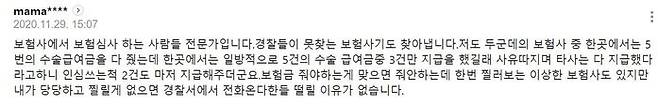 "보험 사기범으로 진정서가 접수되었으니 조사받으러 오십시오!"라는 전화를 받고 수사기관에 출석해야 하는 시민들은 호랑이 굴에 물려가는 듯 공포가 밀려온다. 그러나 "내가 당당하고 찔릴 게 없으면 떨릴 이유가 없다"는 댓글 속 경험담처럼 우리는 더욱 당당할 필요가 있다. '과장 입원'이라는 건 보험회사가 만들어 놓은 과장된 패러다임일 뿐, 주치의의 의견대로 입원하고 그 의견대로 퇴원한 대부분의 사람들을 사기범으로 몰아갈 수는 없기 때문이다.