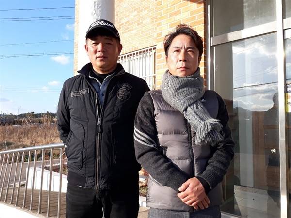 | ▲ 대산읍 화곡1리환경대책위원회 유기종 위원장(사진 오른쪽)과 이영우 이장은 고령의 나이에도 집회에 적극 참여해 주고 있는 마을 어르신들에게 감사하고 죄송하다고 밝혔다. |