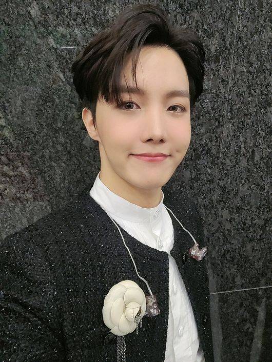 사진 속 제이홉은 지난 5일 진행된 'MMA 2020' 무대에 오르기 전 카메라를 향해 미소를 짓고 있는 모습.