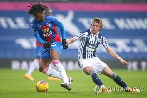 epa08866421 Conor Gallagher (R) of West Brom in action against Eberechi Eze (L) of Crystal Palace during the English Premier League soccer match between West Bromwich Albion and Crystal Palace in West Bromwich, Britain, 06 December 2020. EPA/Alex Livesey / POOL EDITORIAL USE ONLY. No use with unauthorized audio, video, data, fixture lists, club/league logos or 'live' services. Online in-match use limited to 120 images, no video emulation. No use in betting, games or single club/league/player publications.