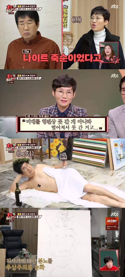 팽현숙은 최양락의 옷을 그리기가 힘들다며 누드화를 요구했다. 최양락은 "용돈 2배로 올려달라"고 말했고 팽현숙이 이를 받아들여 누드화 모델이 준비됐다.