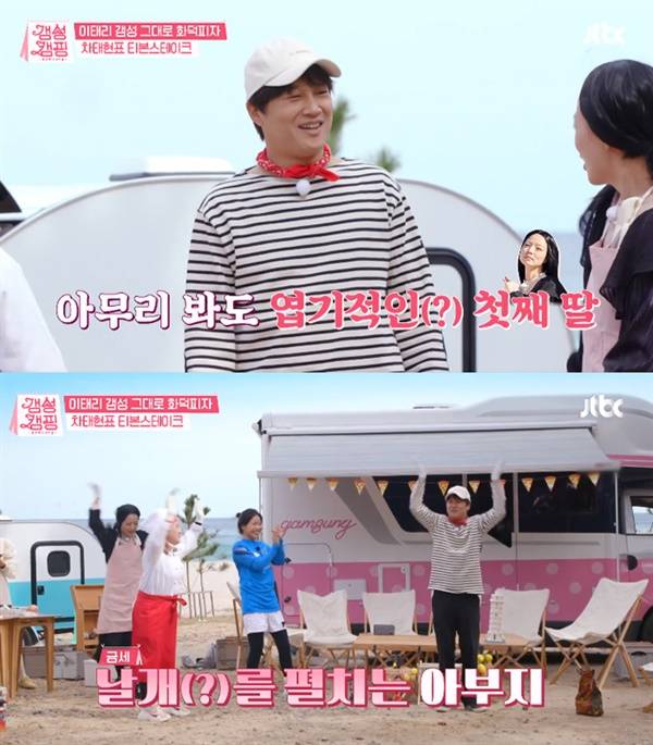 4일 방영된 JTBC <갬성캠핑>에선 야외 숙박 예능 달인 답게 능수능란하게 고정 출연진들과 호흡을 맞췄다. 5명 멤버들의 아빠라는 설정으로 상황극을 펼치면서 특별한 친분이 없던 멤버들과도 벽을 허무는 등 특유의 예능감을 뽐냈다.