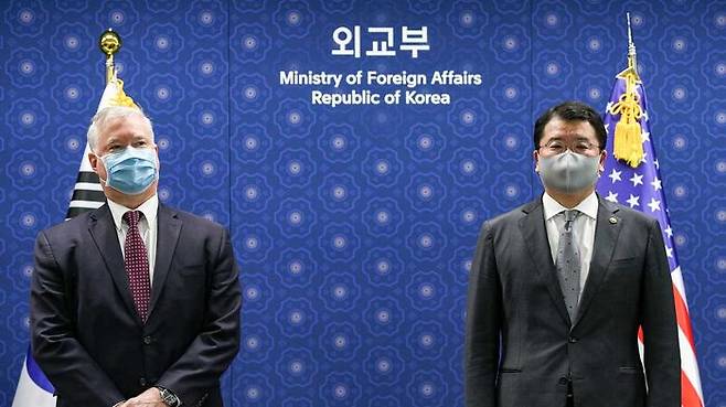 스티븐 비건 미국 국무부 부장관이 최종건 외교부 1차관과의 회담으로 방한 일정에 들어갔습니다.