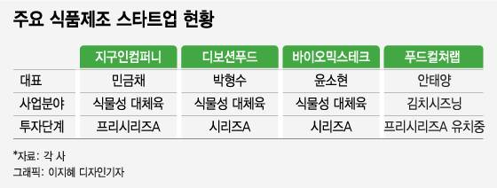 대체육 분야 스타트업들도 최근 앞다퉈 30억~50억원의 시리즈A 투자를 유치하며 본격적인 시장 경쟁에 돌입했다. 지구인컴퍼니가 지난해 10월 40억원 규모 프리시리즈A 투자를 유치한데 이어 디보션푸드, 바이오믹스 등 대체육 스타트업들이 잇따라 시리즈A 투자를 마무리했다.