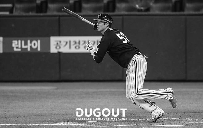 확실하게 변화를 준 부분은 타격 자세요. 원래는 제가 다리를 들고 쳤었는데 시즌 중반부터 (박)용택 선배님처럼 다리를 찍고 치는 스타일로 바꿨어요. 그 부분 말고는 변화를 준 건 없어요.