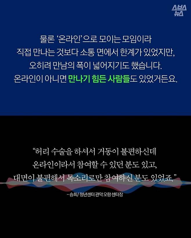 코로나19가 확산되면서 사람 만나기 더 힘들어진 만큼, 온라인에서라도 편하게 이야기할 수 있는 공간을 제공하려는 겁니다.