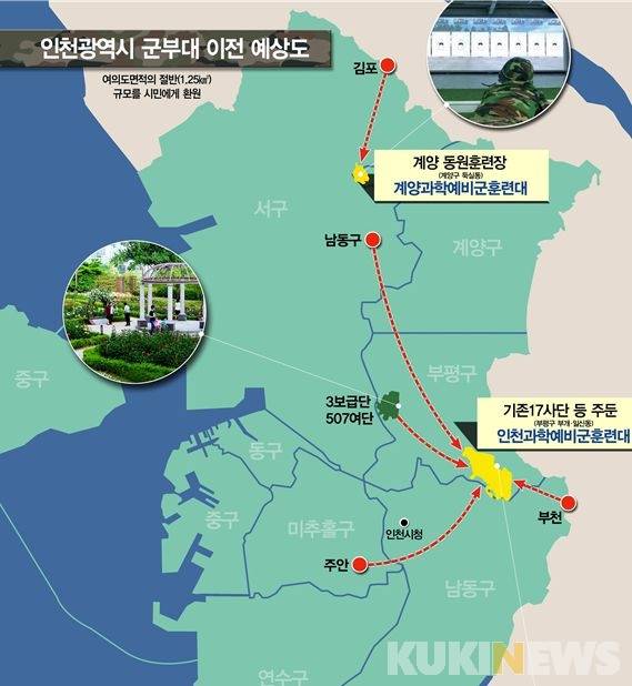 인천시는 부대 재배치에 따라 3보급단 89만㎡ 등 여의도 절반 면적에 이르는 약 120만㎡의 유휴부지가 생길 것으로 보고 이곳에 공원·문화공간과 필수 간선도로 등을 조성하는 방안을 본격 추진할 계획이다.