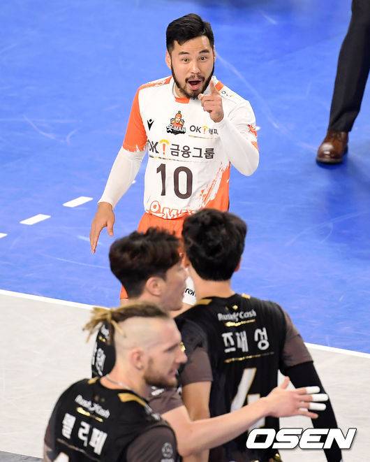 [OSEN=천안, 조은정 기자] 10일 오후 천안 유관순체육관에서 ‘도드람 2020-2021 V리그’ 남자부 현대캐피탈과 OK금융그룹의 경기가 열렸다.