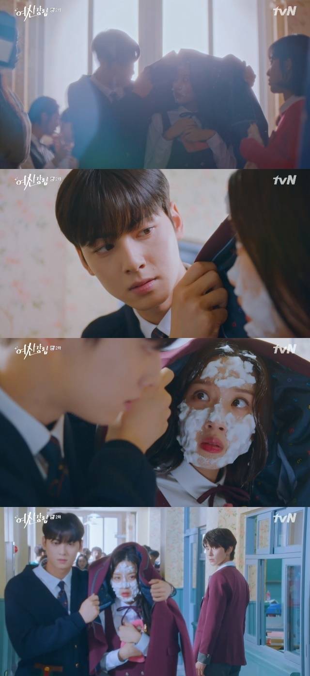 12월 10일 방송된 tvN 수목드라마 '여신강림'(연출 김상협, 극본 이시은) 2회에서는 임주경(문가영 분)의 민낯 공개를 막는 이수호(차은우 분)의 모습이 그려졌다.