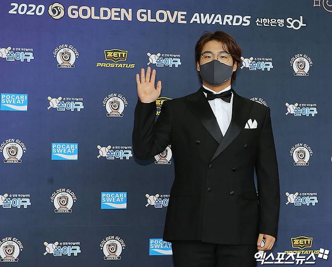 [엑스포츠뉴스 박지영 기자] 11일 오후 서울 삼성동 코엑스 오디토리움에서 열린 '2020 신한은행 SOL KBO 골든글러브' 시상식 레드카펫 행사에 참석한 KT 강백호가 포토타임을 갖고 있다.