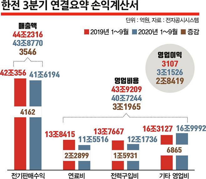 취약한 재무구조를 보완할 새 사업책이 필요했다는 시각도 있다. 한전은 해외에서 원료를 대부분 수입해오기 때문에 유가·환율 등에 따른 실적 변동성이 크다. 실제 저유가가 지속되던 2015~2016년 당시 10조원 넘는 대규모 흑자를 내다 유가가 비쌌던 지난해엔 1조3000억원 가량의 적자를 기록했다. 올 들어선 저유가 기조로 다시 반등에 성공했다. 한전의 3분기 연결기준 영업이익은 2조3322억원으로 전년 동기 대비 88.2% 증가했다. 발전회사 연료비와 민간발전사 전력구입비가 3조9000억원 감소한 데 따른 것이다.
