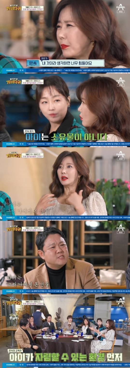 이날 세 아이의 엄마인 조은숙은 육아가 힘들지 않았는지 묻자 "난 쉬웠다. 넷째를 낳고, 계속 낳고 싶을 정도다"고 털어놨다.