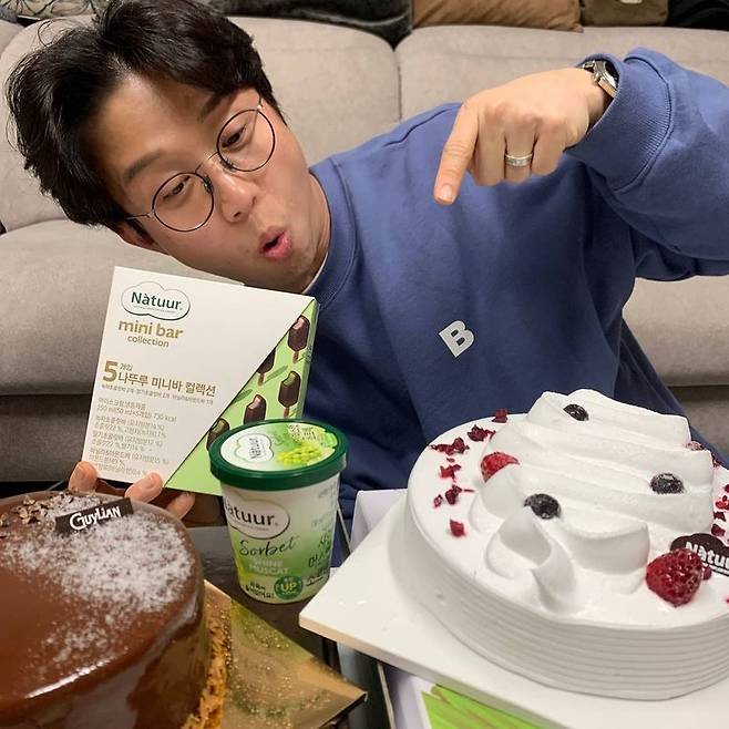 공개된 사진 속 박성광은 아이스크림케이크를 가리키며 행복한 표정을 짓고 있는 모습이다. 특히 해맑은 박성광 모습에 시선이 집중됐다.