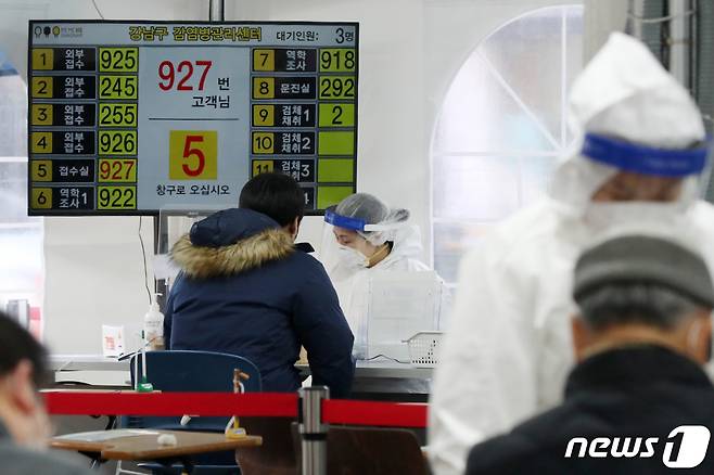 (서울=뉴스1) 민경석 기자 = 15일 오후 서울 강남구 보건소에 마련된 선별진료소에서 의료진들이 신종 코로나바이러스 감염증(코로나19) 진단 검사를 받으러 온 시민들을 안내하고 있다. 2020.12.15/뉴스1