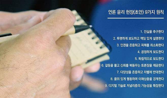그 어느 때보다 높아진 언론의 윤리성·책무성 강화 요구에 부응하기 위해 언론단체들이 저널리즘 실천 규범을 담은 언론윤리헌장(가칭·이하 헌장) 초안을 마련했다.