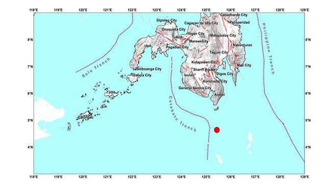 연구소에 따르면 이번 지진의 진원은 다바오 옥시덴털주 사랑가니 타운에서 동남쪽으로 86㎞ 떨어진 곳으로, 진원의 깊이는 16㎞로 관측됐습니다.