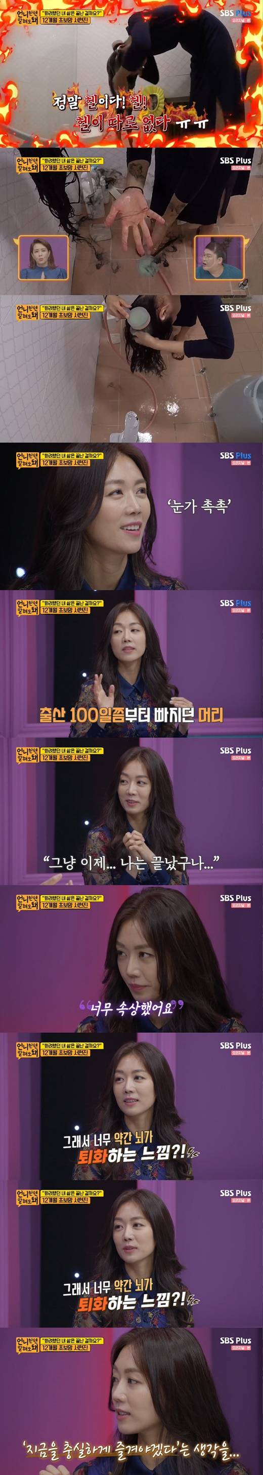 서현진은 출산 후 머리카락이 많이 빠지는 것에 대해서도 "이미 100일 때쯤부터 머리카락이 빠졌고 앞 라인이 정말 다 날아갔다, 이 라인이 너무 빠졌다. 너무 위로 올라갔다"며 이마를 공개한 뒤 "그냥 이제 나는 끝났구나. 정말 나의 외모적인 매력 이런 것들은 어떡하지, 큰일났다. 너무 속상했다"고 전했다.
