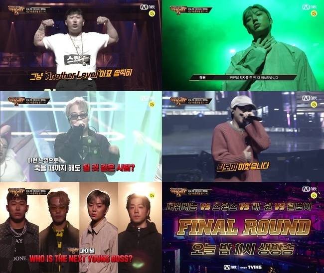 뛰어난 실력과 위트로 자신만의 독보적인 스타일을 구축하며 우승후보로 떠오른 머쉬베놈 역시 영 보스를 향한 강한 자신감을 드러냈고, 듣는 순간 빠져들게 만드는 래핑으로 눈과 귀를 사로잡는 무대를 선보여온 릴보이는 “우승자로 화려하게 장식하겠다”며 포부를 드러냈다.