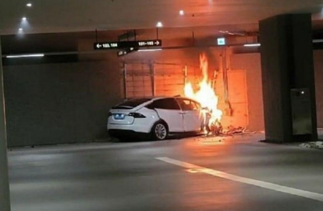 18일 서울용산소방서 등에 따르면 지난 9일 오후 9시43분쯤 용산구 한남동의 한 아파트 지하 주차장에서 차량 화재 신고가 접수됐다. ‘테슬라 모델X’ 차량이 주차장 벽면과 충돌 후 화재가 발생한 것이다.