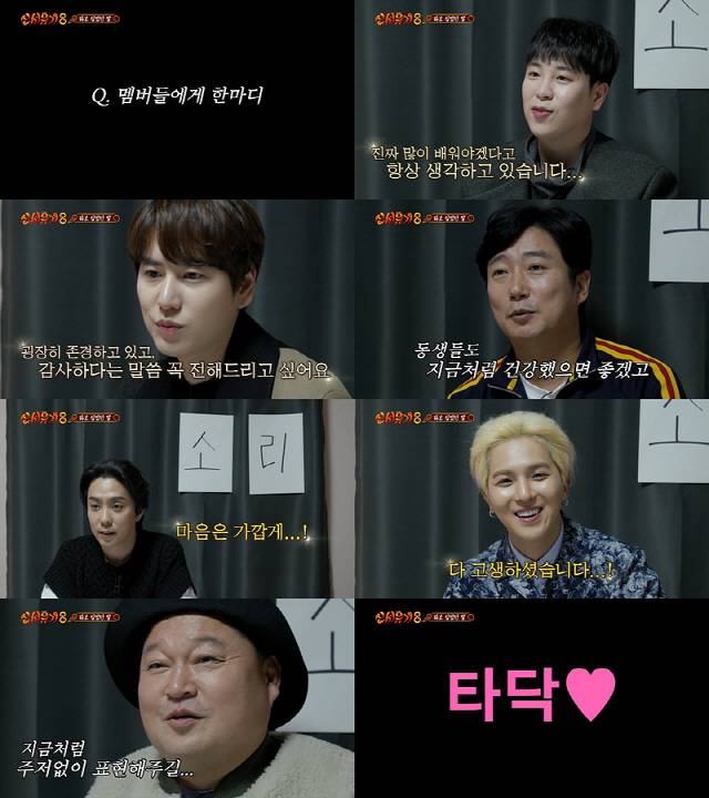 지난 18일(금) 최종회는 '2020 송년의 밤'과 시청자들이 사랑하는 미방송분으로 구성됐다. 송년의 밤 멤버들은 서로 그리고 시청자들에게 전하고 싶은 이야기를 꺼내 색다른 분위기를 자아냈다. 강호동은 YB에게 "거침없는 표현들, 지금처럼 주저없이 표현해주길"이라며 감사를 전했고 규현은 OB에게 "항상 감사드리고, 굉장히 존경하고 있다"라며 진심을 보였다. 은지원은 시청자들에게 "모두 많이 힘든 시기인 것 같다. 마음은 가깝게 지내자"라며 따스한 인사를 전했다. 이에 시청자들은 "덕분에 진짜 많이 웃었다", "출연진 제작진 모두 감사하다", "시즌9 기다리겠다" 라며 시즌8에 대한 애정을 드러냈다.