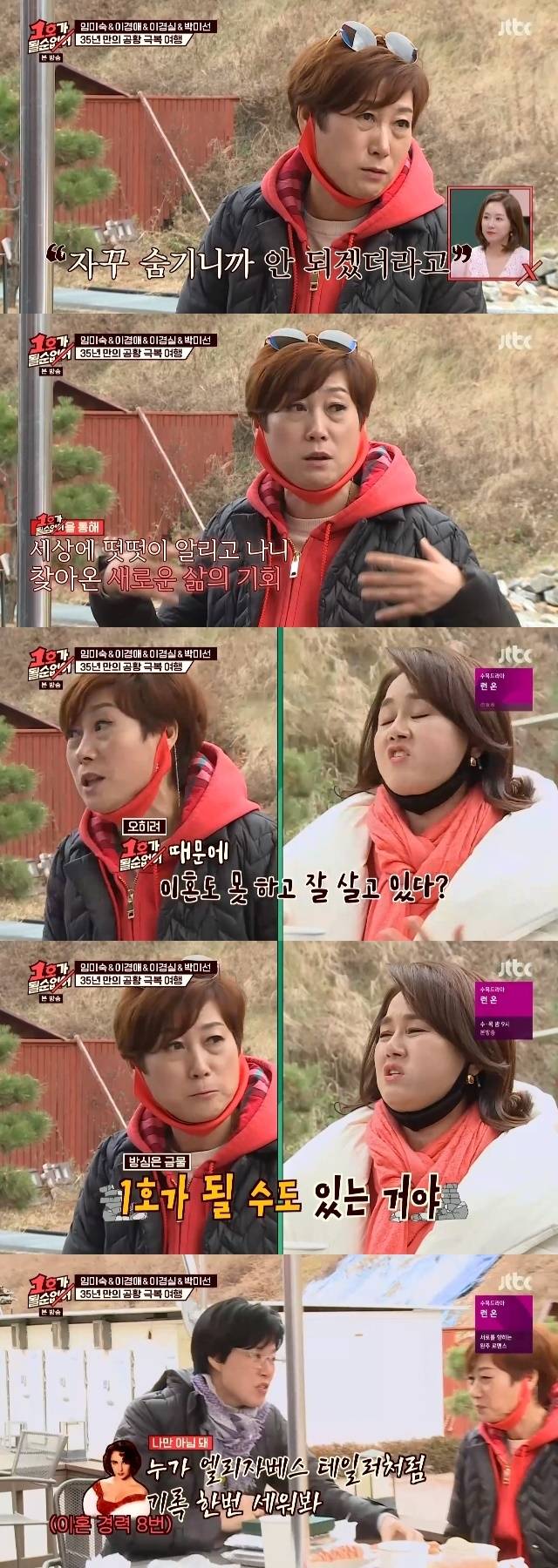 12월 20일 방송된 JTBC 예능 '1호가 될 순 없어'(이하 '1호가') 30회에서는 임미숙이 35년 만에 바다로 여행을 떠났다. 공황장애 탓에 그 흔한 바다 여행조차 가지 못한 임미숙을 위해 이경실, 박미선, 이경애가 준비한 '장거리 여행 연습'이었다.