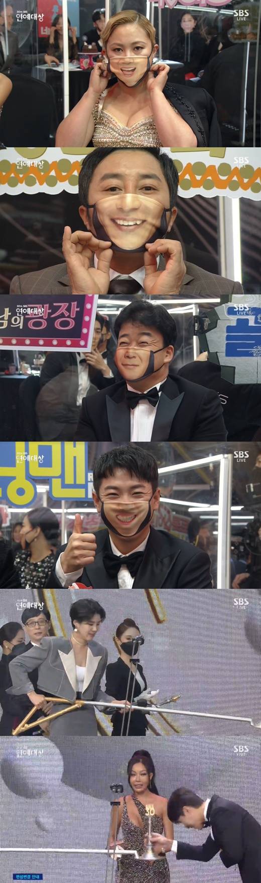 이 가운데 SBS는 지난 19일 '2020 SBS 연예대상'을 진행했다. 이날 출연자들은 자신의 하관이 프린트된 특수 제작 마스크를 썼고, 시상 또한 시상팔을 이용해 2M 거리를 유지하며 진행됐다.