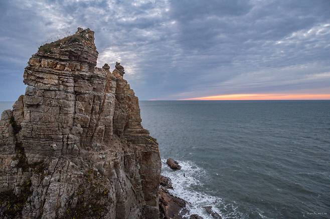 이곳까지 오는 동안 때때로 마주치고 스쳤던 관광버스 두 대가 마침 들어오고 단체 여행객들이 내렸다. 그들에게 오늘은 두무진을 처음 만나는 날이다. 해가 지기까지 짧은 시간이 남았지만, 그들 역시 최선을 다해 사진을 찍어가며 두무진을 마음에 담았다. 시간이 흐르면 사람 사는 동네야 변하게 마련이지만 자연은 늘 한모습을 하고 있으니 든든하고 반갑다. 수평선 위로 가득했던 해무 때문에 마지막 해가 어찌 사라졌는지 알 수 없었다.