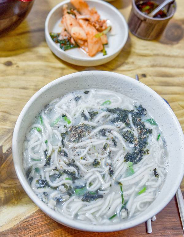 용틀임바위를 찾아가다 배낭을 맡겼다는 이유로 돈 주고는 절대 사 먹어 본 적이 없는 칼국수를 주문했다. 그런데 이게 웬걸, 뚝뚝 끊어지는 면발과 국물의 얼큰, 시원함이 상상 이상이었다. 메밀면과 굴 육수를 사용한다는 이 식당은 지역민들과 맛집 애호가들에게 유명한 장촌칼국수였다.