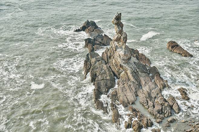 모래와 진흙이 쌓여 만들어진 10억 년의 해식주로 용이 몸을 뒤틀며 승천하는 모습을 절묘하게 닮았다. 오랜 세월 침식작용을 받으면서도 이암이 포함된 암석의 구조 때문에 뾰족하고 꼬불꼬불한 모양이 되었다. 주변에 천연기념물 507호인 남포리 습곡구조가 있다.