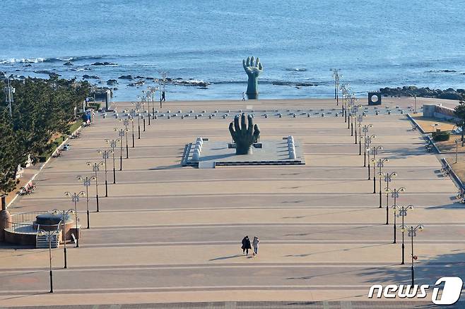 (포항=뉴스1) 최창호 기자 = 22일 국내 최고의 해맞이 명소로 손꼽히는 경북 포항시 남구 호미곶 해맞이 광장이 오는 31일부터 2021년 새해 첫 날인 1일까지 신종코로나 바이러스 감염증(코로나19) n차 감염을 차단하기 위해 폐쇄된다. 해맞이 광장을 찾은 관광객들이 광장을 걸어가고 있다. 2020.12.22/뉴스1