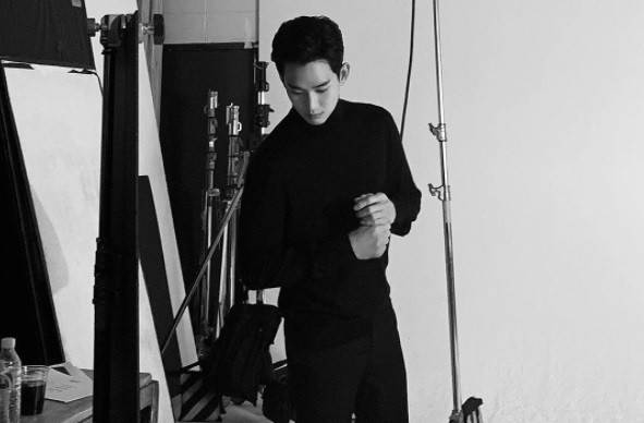 사진 속 김수현은 촬영 준비에 한창인 모습. 흑백사진 속 김수현은 단조로운 디테일의 니트에 슬랙스를 매치, 모델 포스를 뽐냈다. 짙은 눈썹과 조화를 이룬 조각 이목구비도 여전했다.