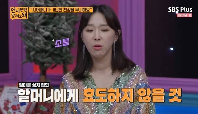 12월 24일 방송된 SBS플러스 ‘언니한텐 말해도 돼’에서는 ‘가난한 며느리는 죄인인가요?’ 사연이 도착했다.