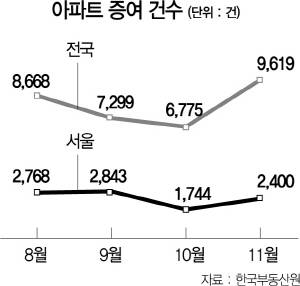 본지가 한국부동산원 자료를 분석한 결과 올 1월부터 11월까지 이뤄진 아파트 증여가 역대 최고치를 기록한 것이다.