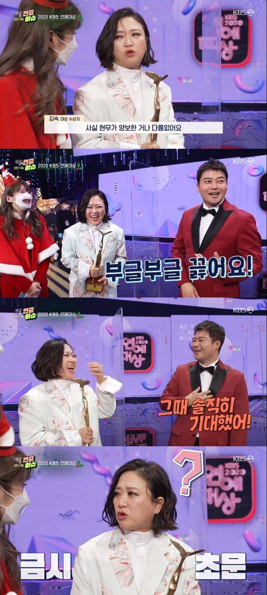 '연중 라이브'에서 방송인 김숙이 '2020 KBS 연예 대상' 수상 소감을 밝혔다.
