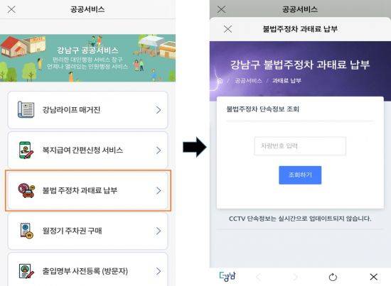 '더강남' 앱 주정차위반 과태료 조회·납부 가능