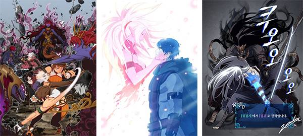 <좌부터 박용제-던파 한컷만화!, 하일권-나를 잊지 말아요, 장성락-귀검사, 검귀로 레벨업>