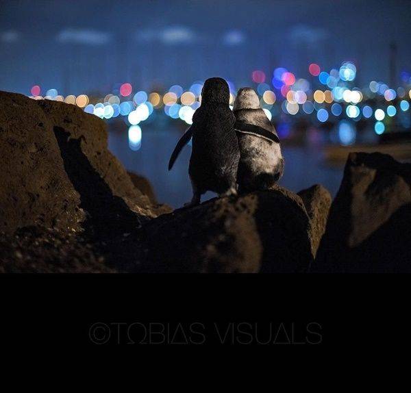 호주 멜버른에서 두 펭귄의 모습을 포착한 사진작가 토비아스 바움게트너 씨는 "이 사진을 찍으려고 펭귄 서식지에서 사흘 밤을 보냈다"며 "이들은 정기적으로 만나 서로를 위로하고 도시의 불빛을 보면서 몇 시간 동안 함께 서 있었다"고 털어놨습니다.
