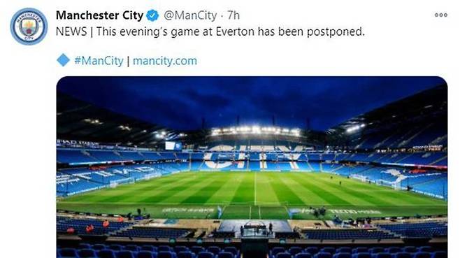 맨시티는 에버튼과 2020-2021 EPL 16라운드 원정 경기를 치를 예정이었으나 홈페이지를 통해 "최근 코로나19 진단검사에서 다수가 양성 반응을 보였다. EPL 사무국은 두 구단과 협의해 경기를 연기하기로 했다"고 밝혔습니다.
