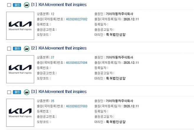 29일 업계에 따르면 기아차는 이달 중순부터 특허청에 수십여개의 상표를 신규 등록한 것으로 알려졌다.