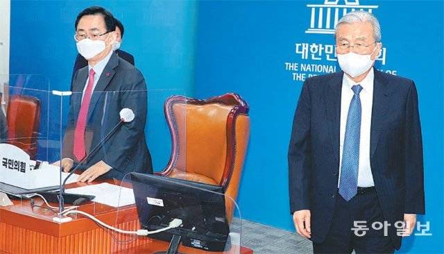 | 국민의힘 온택트 정책워크숍 국민의힘 김종인 비상대책위원장(오른쪽)과 주호영 원내대표가 29일 오후 국회 본청에서 열린 제1차 온택트 정책 워크숍에 참석하고 있다. 김동주 기자 zoo@donga.com |